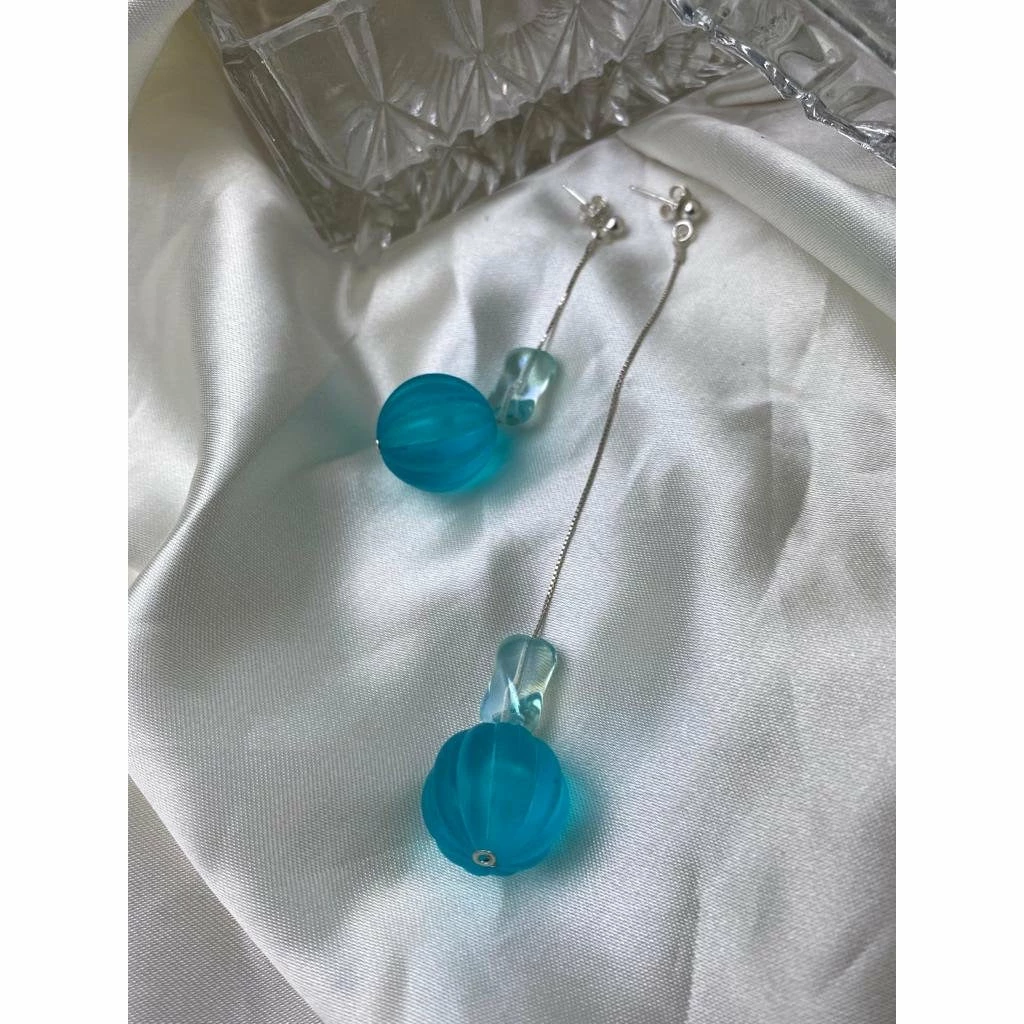 Blue drop silver 925 earrings vintage beads