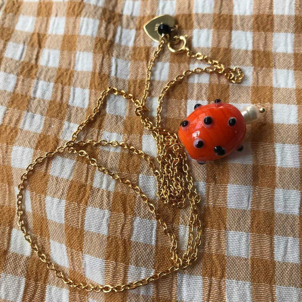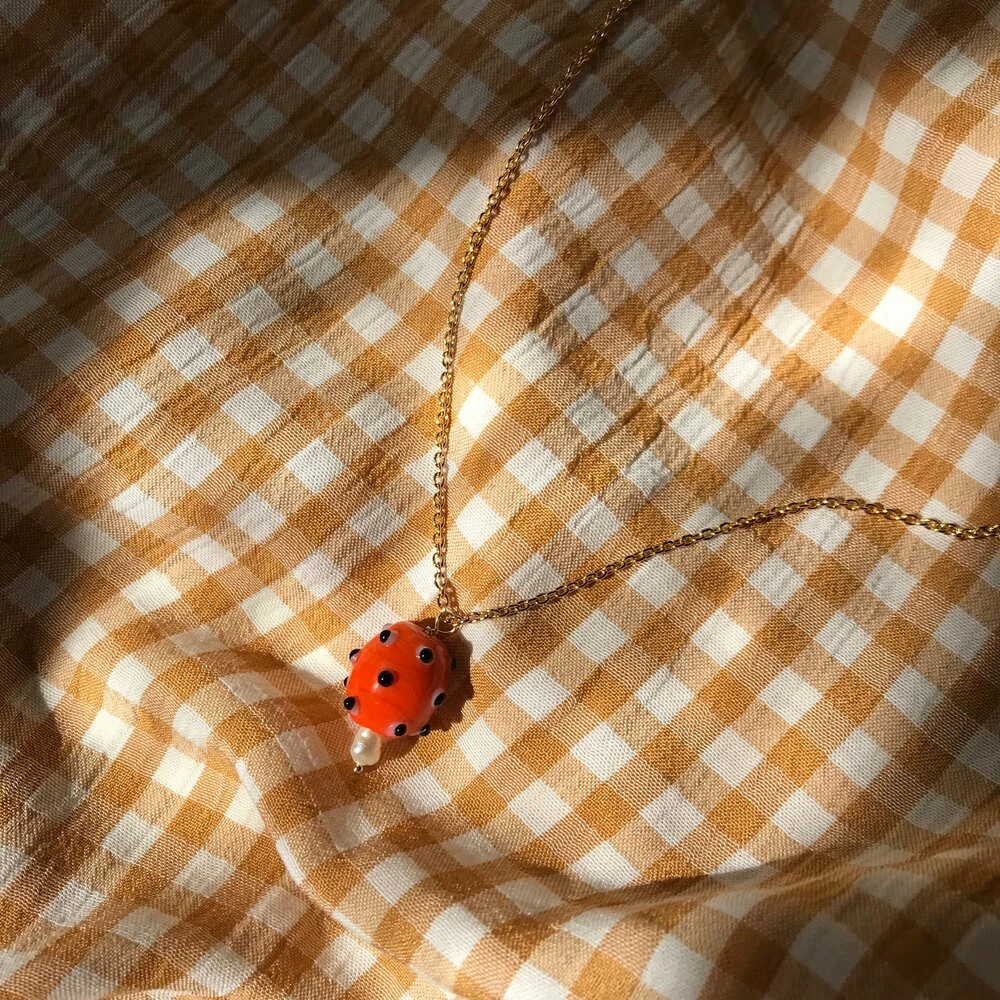 The vintage mushroom pearl is made from a sweet water pearl and a vintage glass bead.