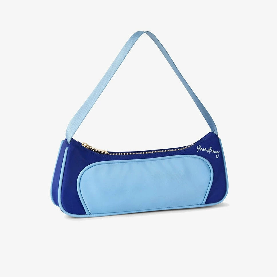With its sleekly rounded silhouette, this mini purse serves big ‘90s energy. Crafted exclusively from recycled polyurethane, it’s dyed a vivid blue and embroidered with stars. A duo of contrasting blue compartments at the face, add a touch of playfulness while holding your iPhone and other life essentials. The bag is finished with gold-toned hardware, including a House of Sunny logo plaque. Pair it with our Mountains Should Be Climbed Jacket for a superstar look.