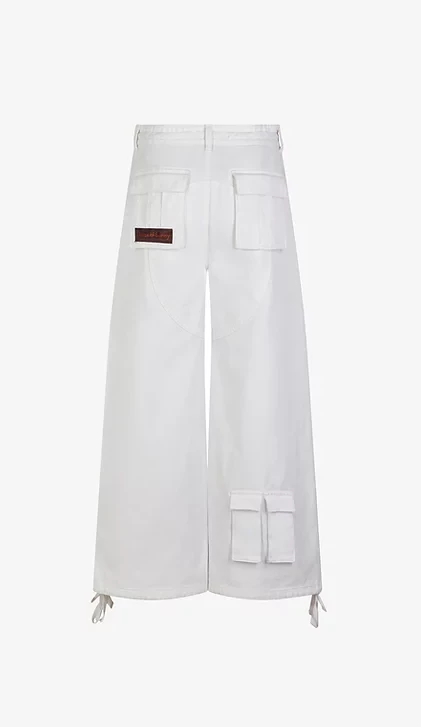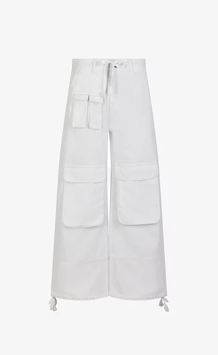 Equal parts versatile and utilitarian, these cargo pants make an impact however they’re worn. The waist features belt loops and drawstrings for adjustability. The wide legs have a panelled construction, complete with sculpted cargo pockets, topstitch details and drawstrings at the hem. Crafted from breathable cotton and finished with minimal water and no chemicals, they’re perfect for sunnier days.