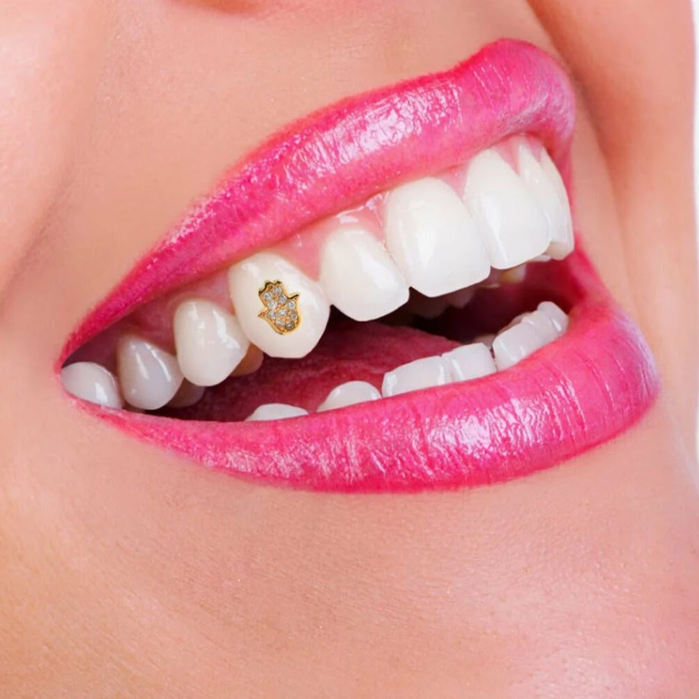 **Alternatively, for a more durable and reliable hold, the gems can also be applied by dentists.