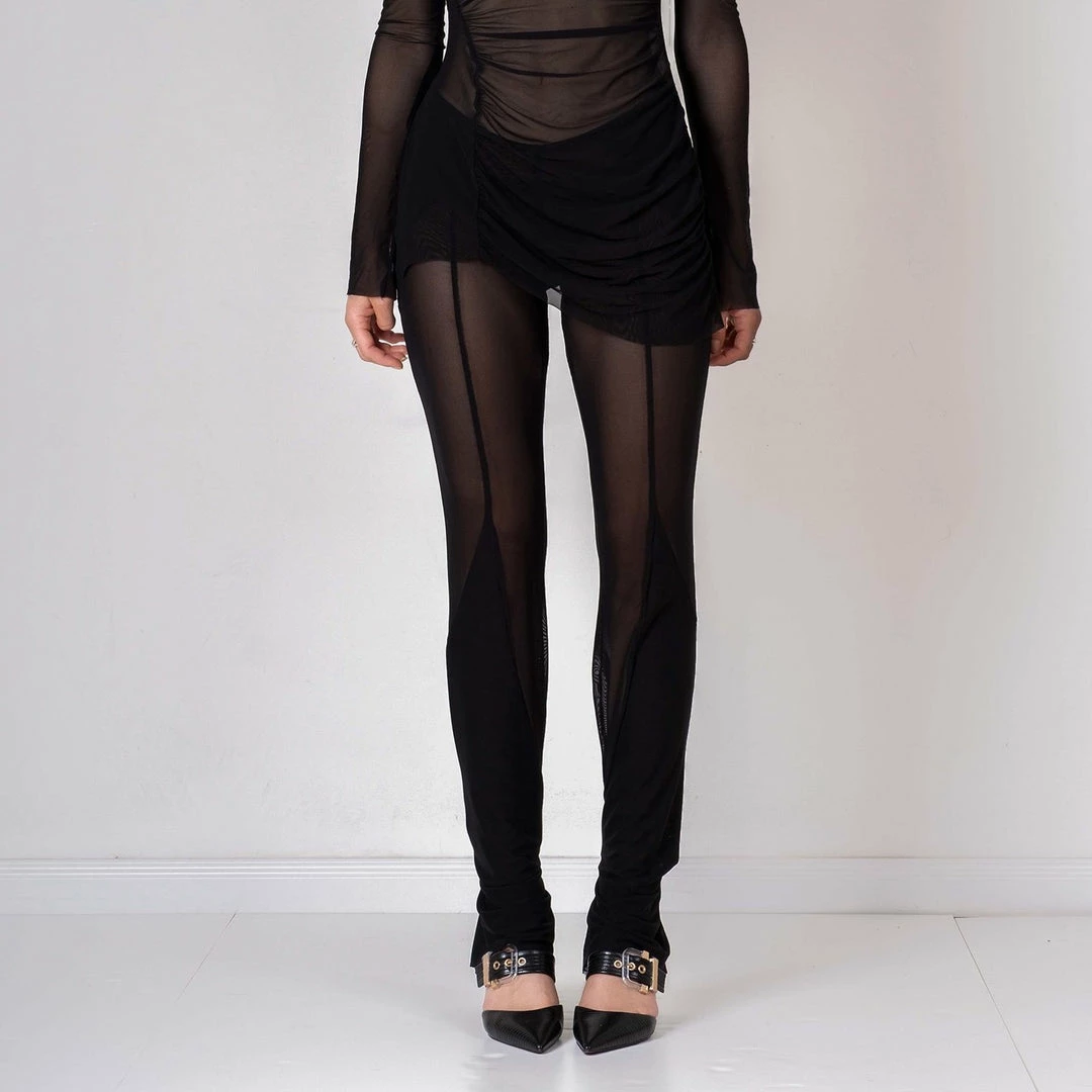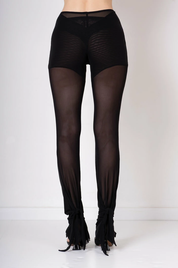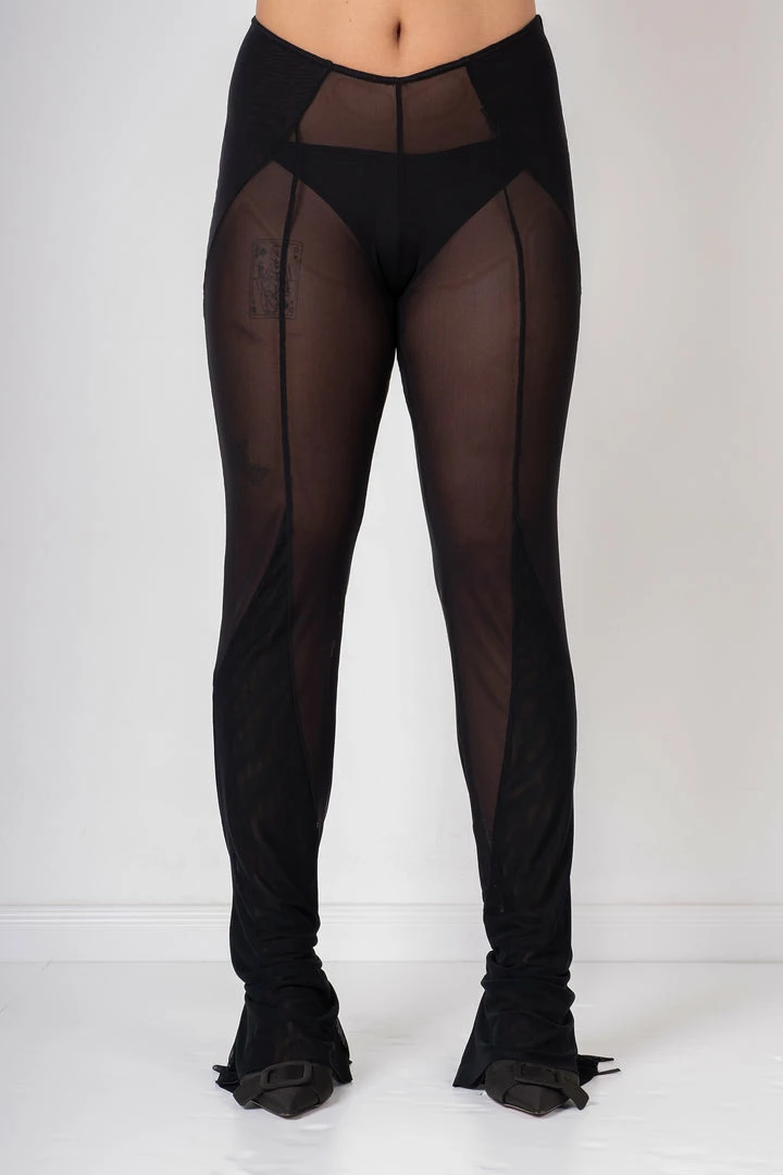 The Money Mesh Pant is a mid-waist flared Legging made of 4-way-stretch mesh. Dividing seams and double layered panels provide a sleek contrast effect. The flare can be adjusted through ties.