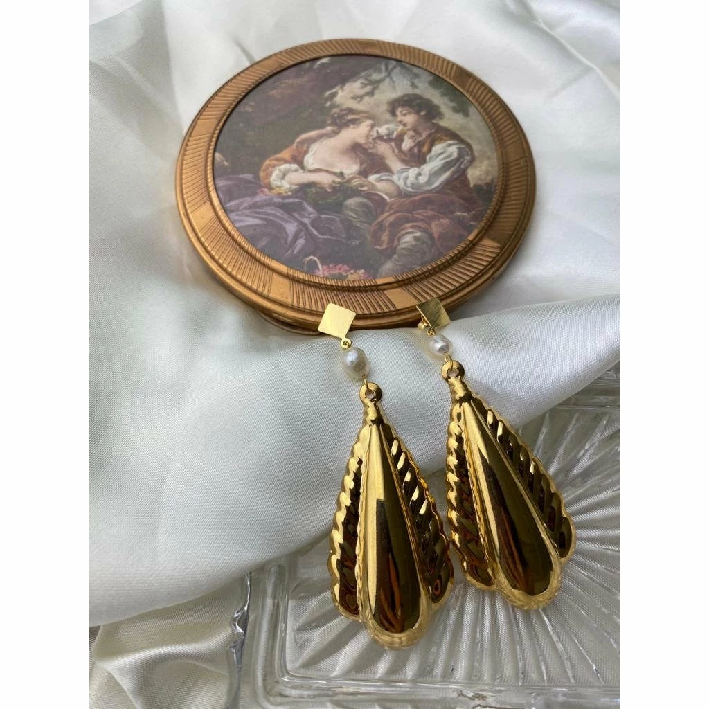 18k gold plated over brass drops from the 1980’s and sweet water pearls on 18k gold filled earrings.